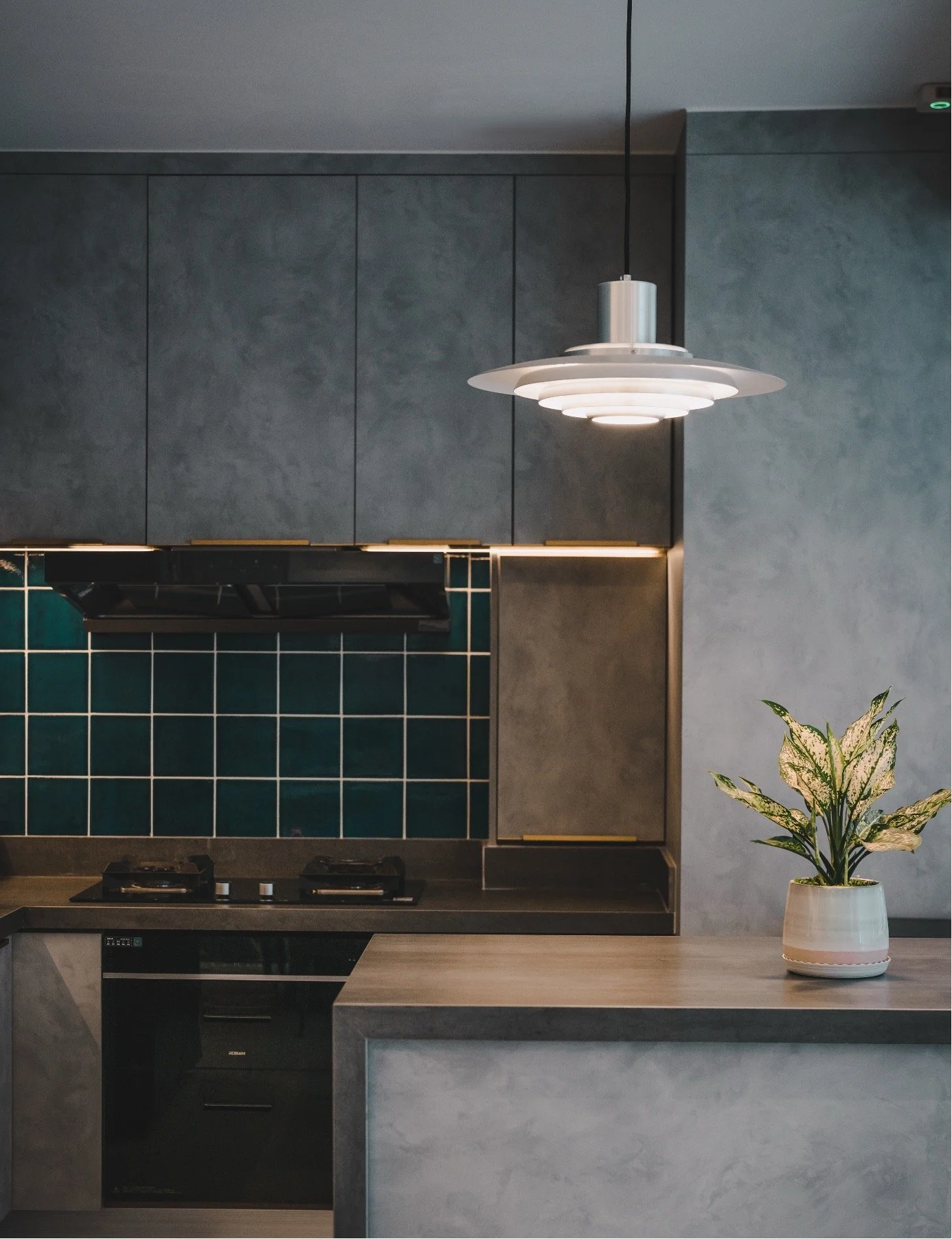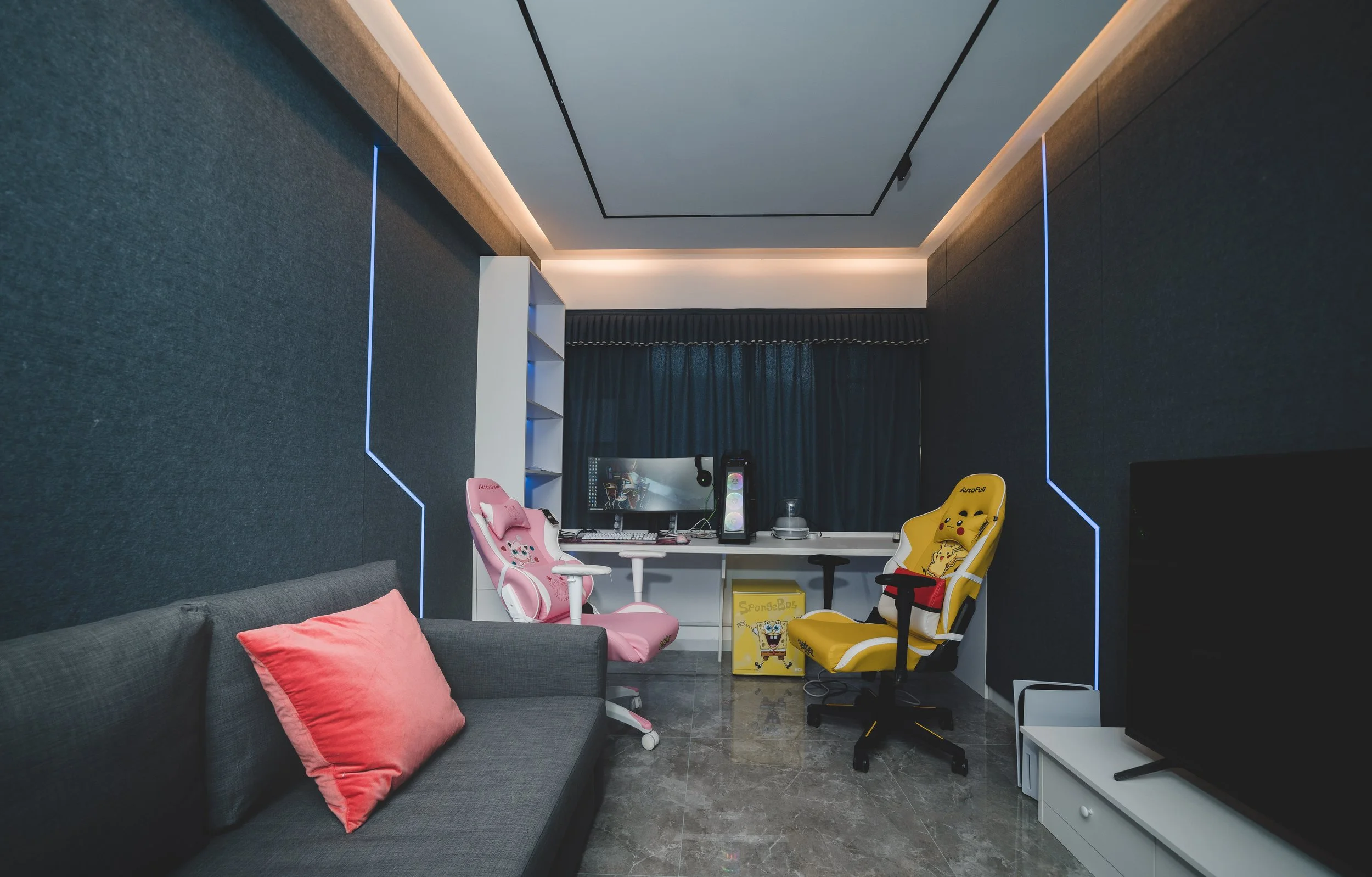 A fast-paced work life led the client to view their home as the sole source of energy replenishment: a sanctuary where they could quietly handle emails, casually prepare meals, play games, and completely unwind. The design is centered on a Modern Retro theme, where minimalist blocks and negative space reset the mind, while carefully placed elements like vintage tiles, a caramel leather sofa, classic speakers, and a neon arcade machine serve as delightful "Easter eggs" that light up the space.