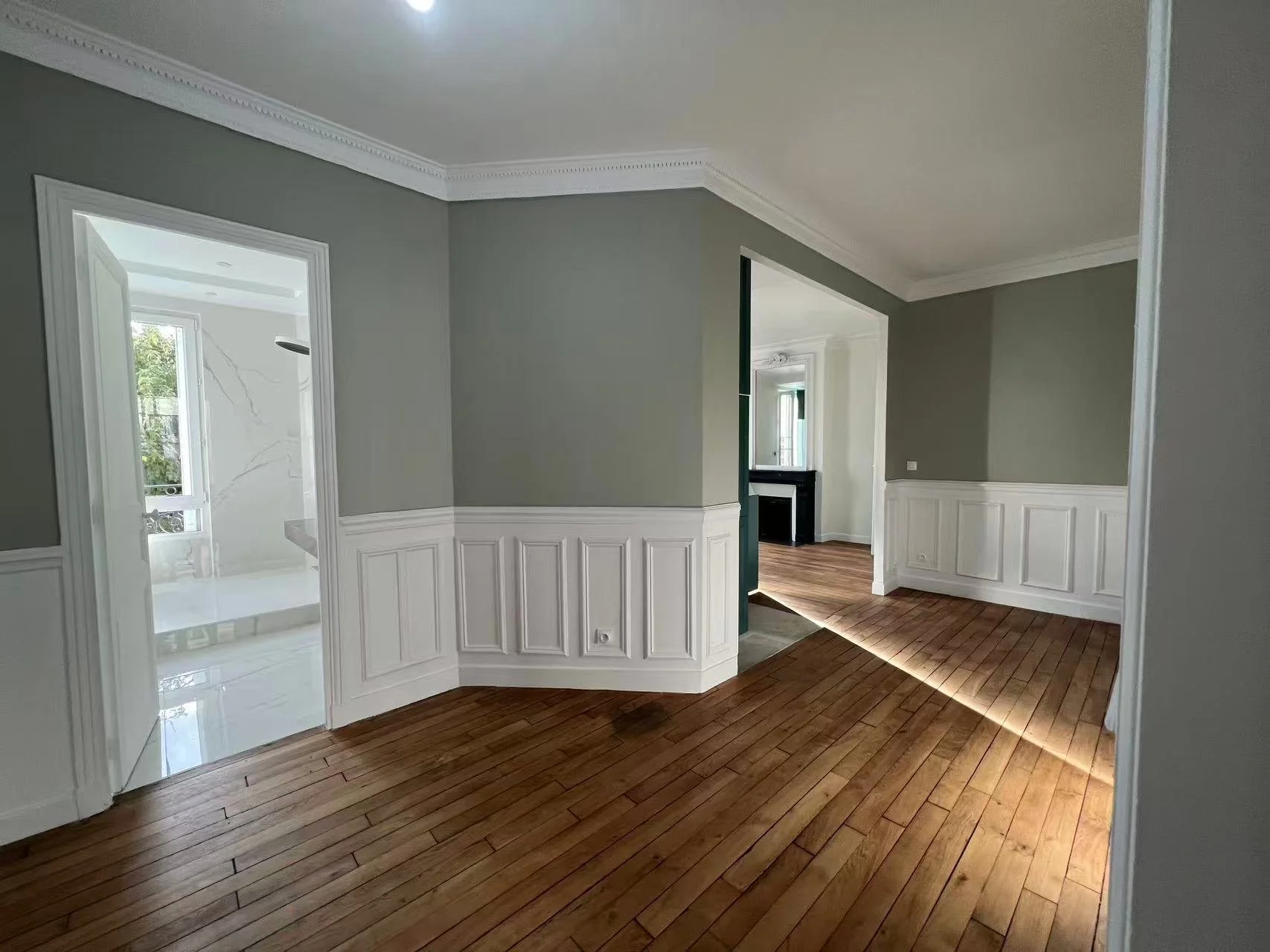 Within a preserved historic building, we created a modern 86 sqmt. living space for a French couple. While retaining the original public-facing fireplace, we cleverly integrated a new kitchen, bathroom, and storage, using movable furniture to accommodate both dual work and leisure. The design weaves together deep walnut wood, blue and white porcelain tiles, and French plaster moldings, creating an aesthetic dialogue between Chinese and French cultures. Smart lighting and hidden storage ensure a modern comfort is wrapped within the classical shell. Despite a strict budget of €100,000 and challenges from pandemic-related work stoppages and structural approvals, the project was delivered on schedule.