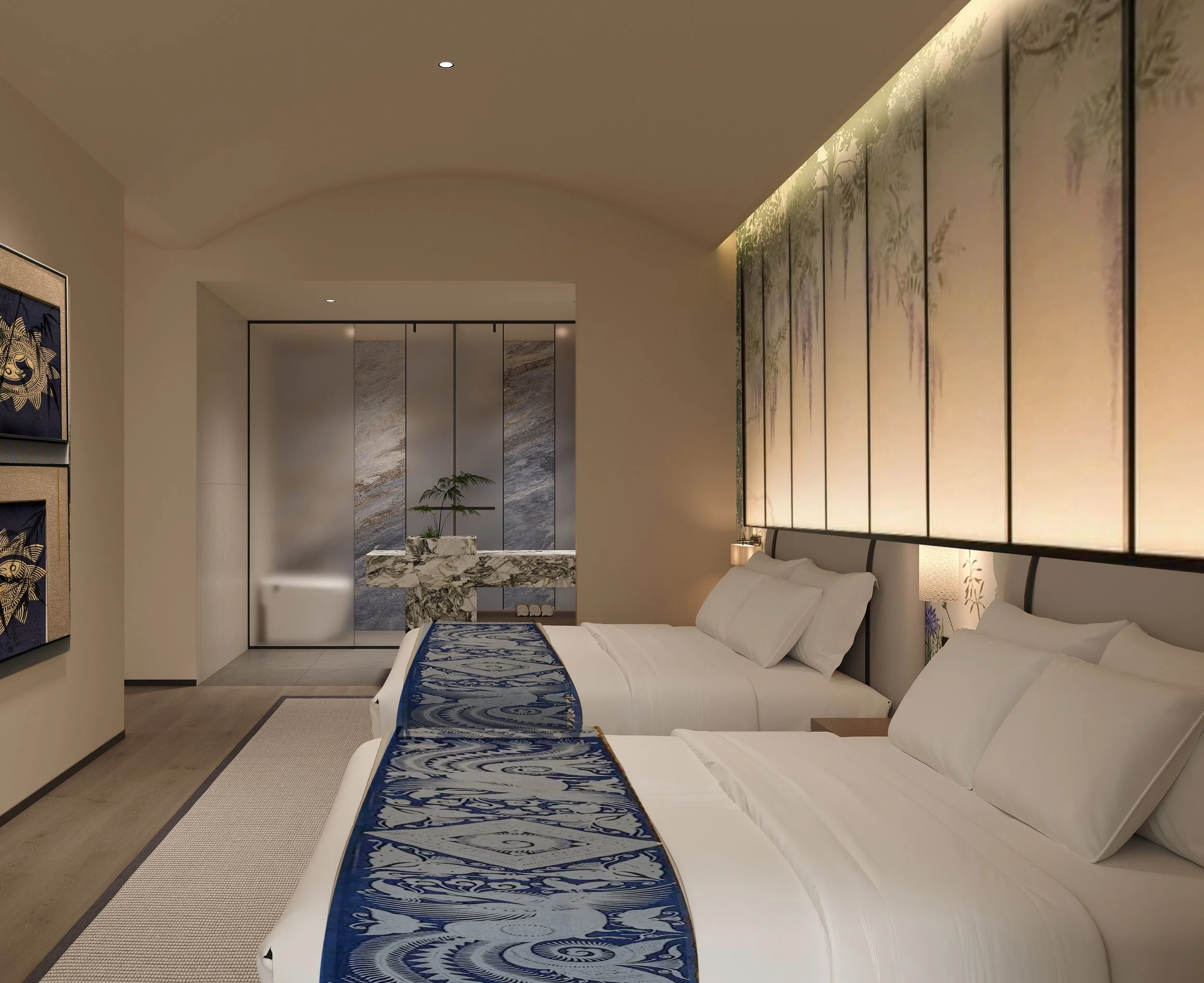 Commissioned by Meilong Heshun Hotel Management, the Resort Hotel sits within a National 4A scenic area in Guizhou. The brief called for a 1,500-square-metre retreat that weaves local minority culture into a contemporary language, allowing the architecture and interiors to merge quietly with the surrounding mountains and rivers. The programme includes a welcoming lobby, Chinese restaurant, conference suite, gym, 32 guest rooms and a car park—all delivered on an 8-million-RMB budget while maintaining luxury-grade design and construction standards.