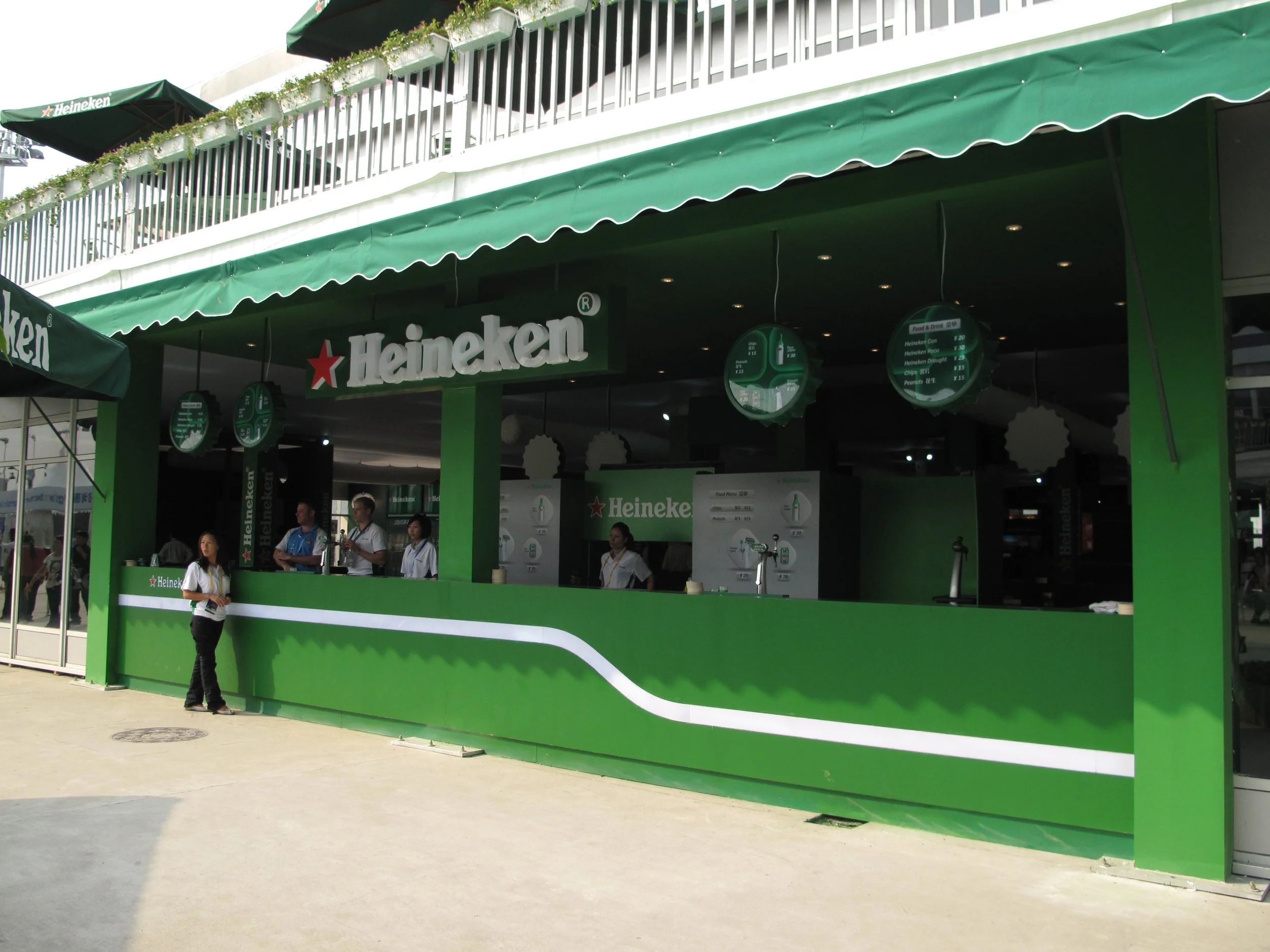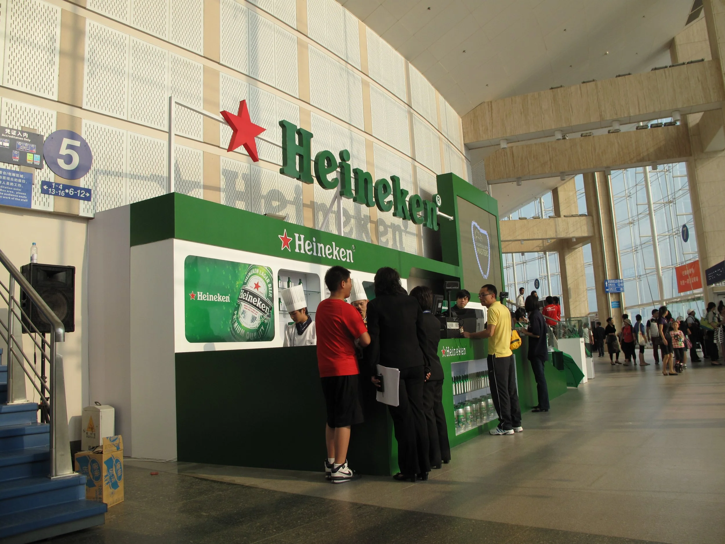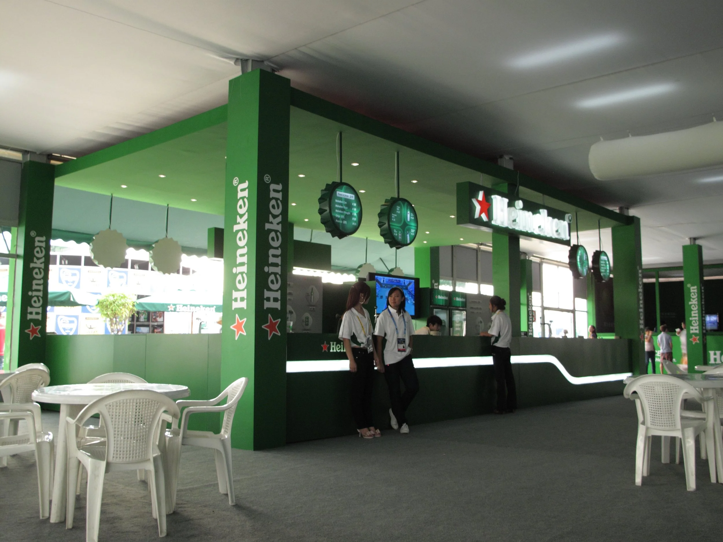 As the premium sponsors of the Shanghai Tennis Masters Cup, Heineken leveraged this top-tier international sporting platform to achieve the dual objectives of brand promotion and sales. The core mission of this project was to provide comprehensive, immersive brand exposure throughout the entire tournament by utilizing Heineken’s distinctive brand identity. This was accomplished through a variety of dedicated spaces, including a public brand display and sales area, the Heineken Stage, VIP Hospitality suites, and a Skybox.